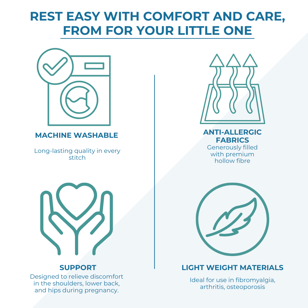 - Ergonomic Design: Relieves pressure and reduces discomfort during pregnancy, helping promote better sleep.