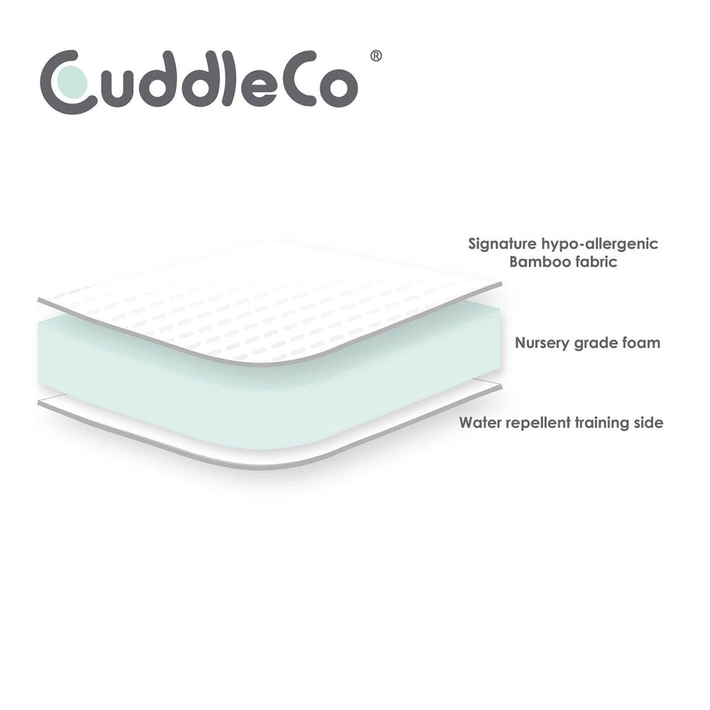 The Cuddleco Lullaby Hypo-Allergenic Bamboo Foam Cot Bed Mattress, available at For Your Little One, is a premium choice designed to provide your baby with the ultimate comfort and a healthy sleeping environment. Thoughtfully crafted with hypoallergenic bamboo foam and innovative features, this mattress ensures a restful and safe sleep for your little one.