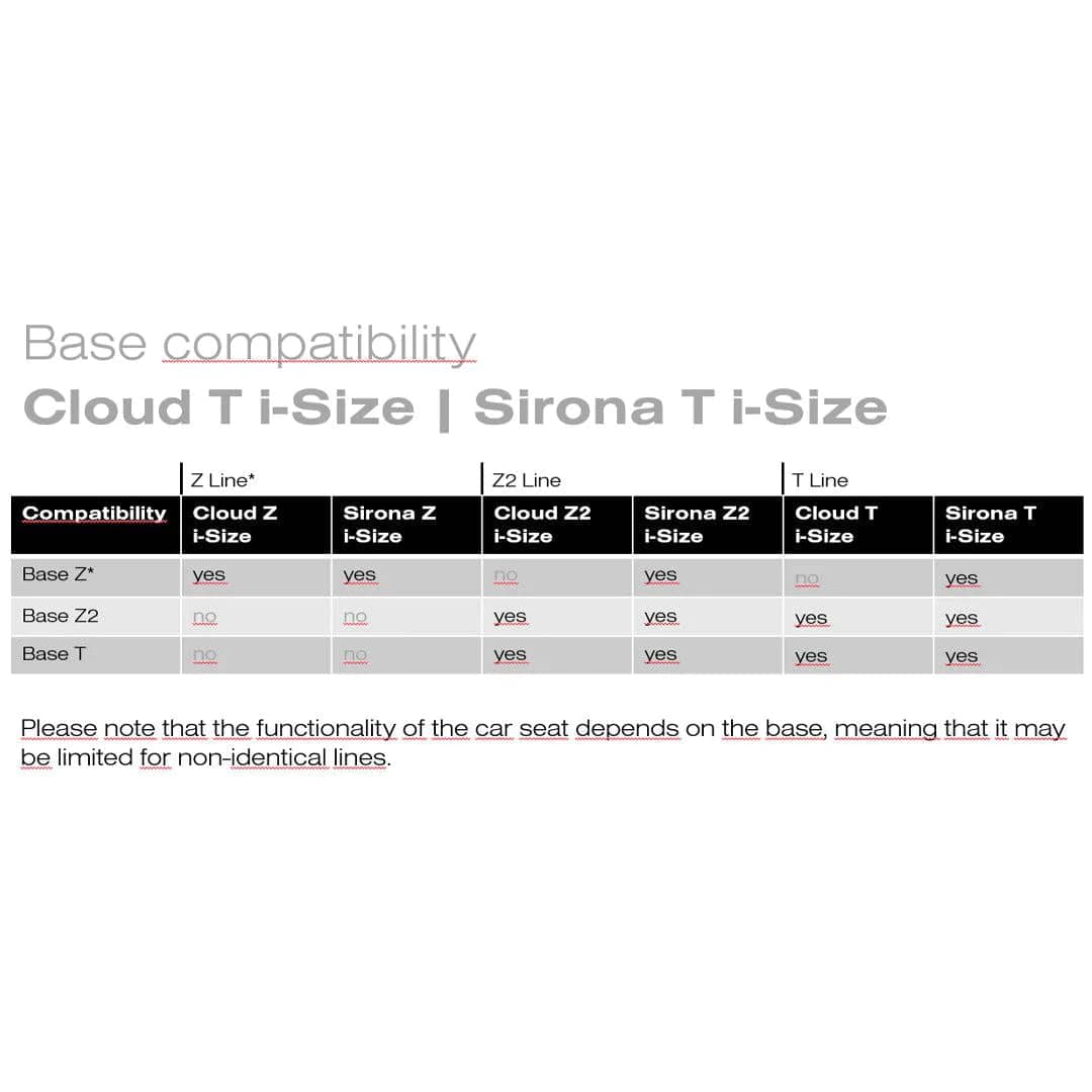 - Compatible accessories: CYBEX Base T, Summer Cover, Sun Shade, ISOFIX Guides, Insect Net, Raincover, SensorSafe 4-in-1 Kit Infant, Snogga Mini 2 + Platinum Winter Footmuff Mini
