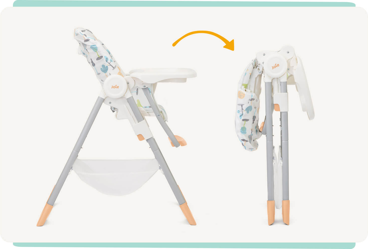 Designed with convenience in mind, this highchair boasts an extremely compact size and can be freestanding when folded, saving valuable space in your home. The one-hand, quick compact fold is easily accessible from the middle of the seat, allowing for hassle-free storage.