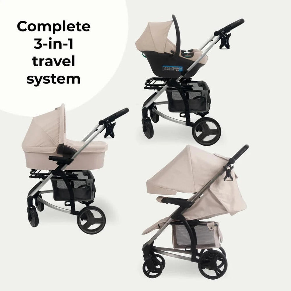 The My Babiie MB200i 3-in-1 Travel System with i-Size Car Seat - Billie Faiers Oatmeal is the ultimate solution for parents on the go. Designed with convenience and comfort in mind, this travel system combines a pram, pushchair, and car seat into one handy system, making it perfect for all your trips with your little one.