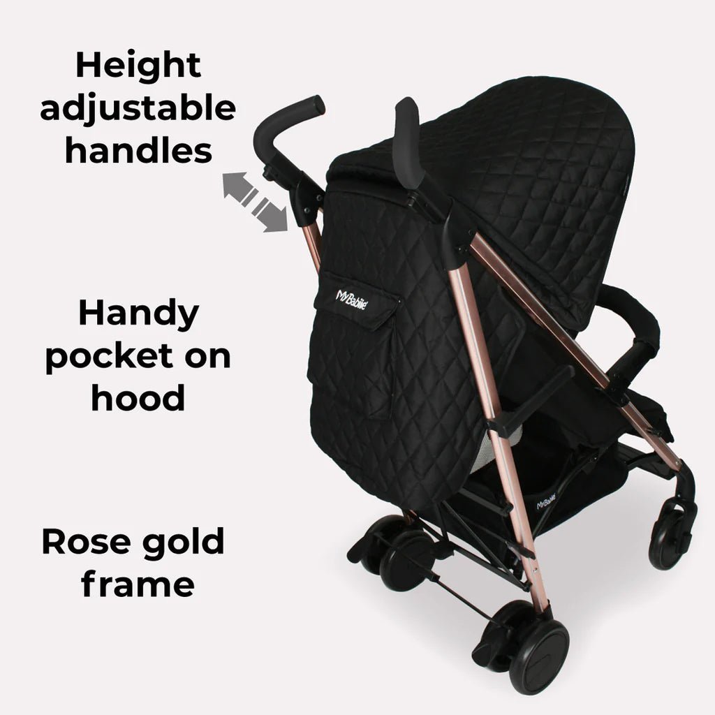 Elevate your strolling experience with the My Babiie MB51 Billie Faiers Rose Gold Black Quilted Stroller. Order yours today and enjoy the perfect blend of style, convenience, and comfort.