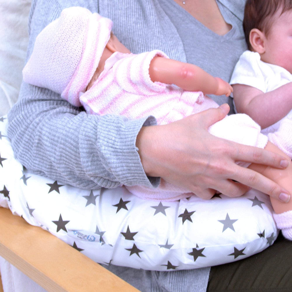 For Your Little One - Twin Pregnancy & Nursing Pillow in Silver Stars