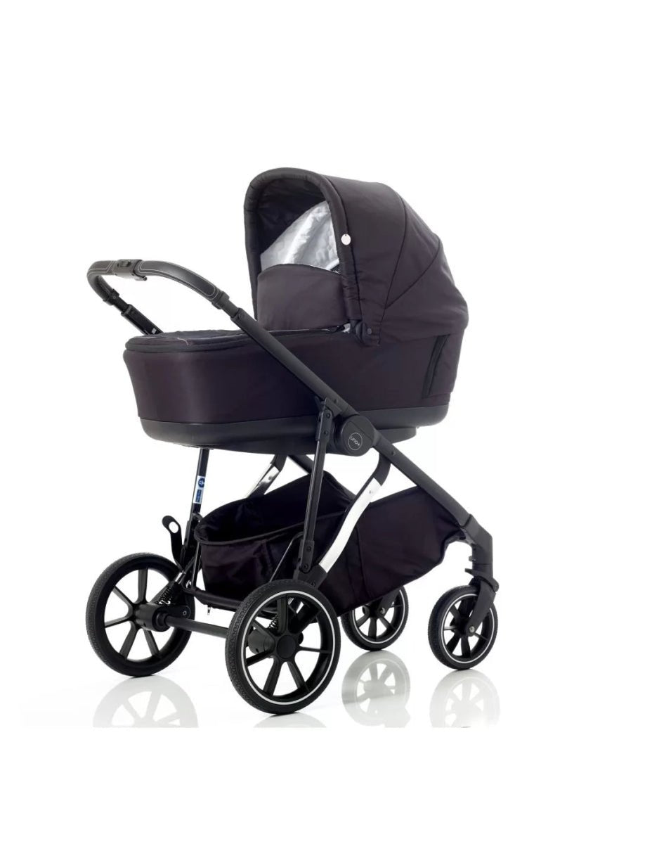Upgrade your baby's comfort with the Mee-Go Uno Plus Carry Cot in elegant Black/Chrome. Designed for newborns up to around 6 months, this carrycot provides a safe and cozy space for your little one to relax and sleep peacefully.